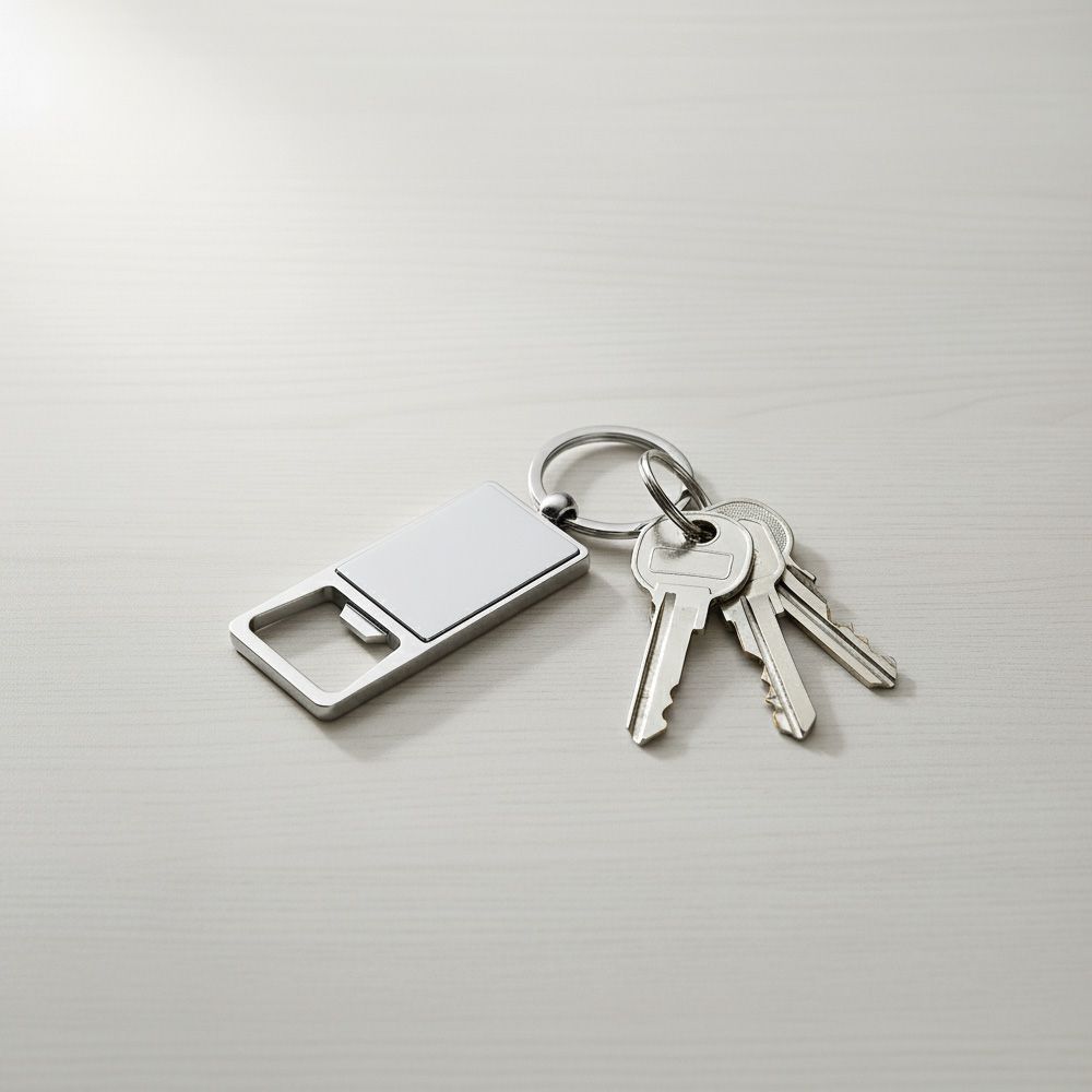 Прямокутна форма з глянцевою металевою поверхнею створює ідеальне поле для брендування. Можливе нанесення логотипа компанії на брелок. Завдяки цьому він стає не лише корисним аксесуаром у повсякденному житті, а й ефективним носієм реклами, який завжди буде під рукою.