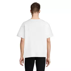Футболка відрізняється зручністю в носінні. Крій оверсайз і опущена лінія плечового шва дозволяють моделі вільно сидіти на фігурі. Кругла горловина оброблена рібаною з додаванням еластану. Щоб футболка тримала форму, на горловині та плечах вшита зміцнююча тасьма.