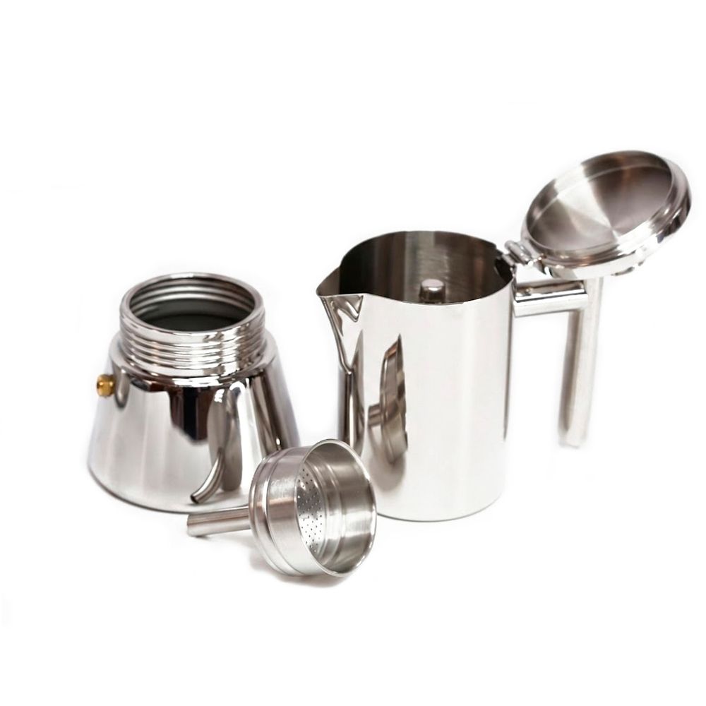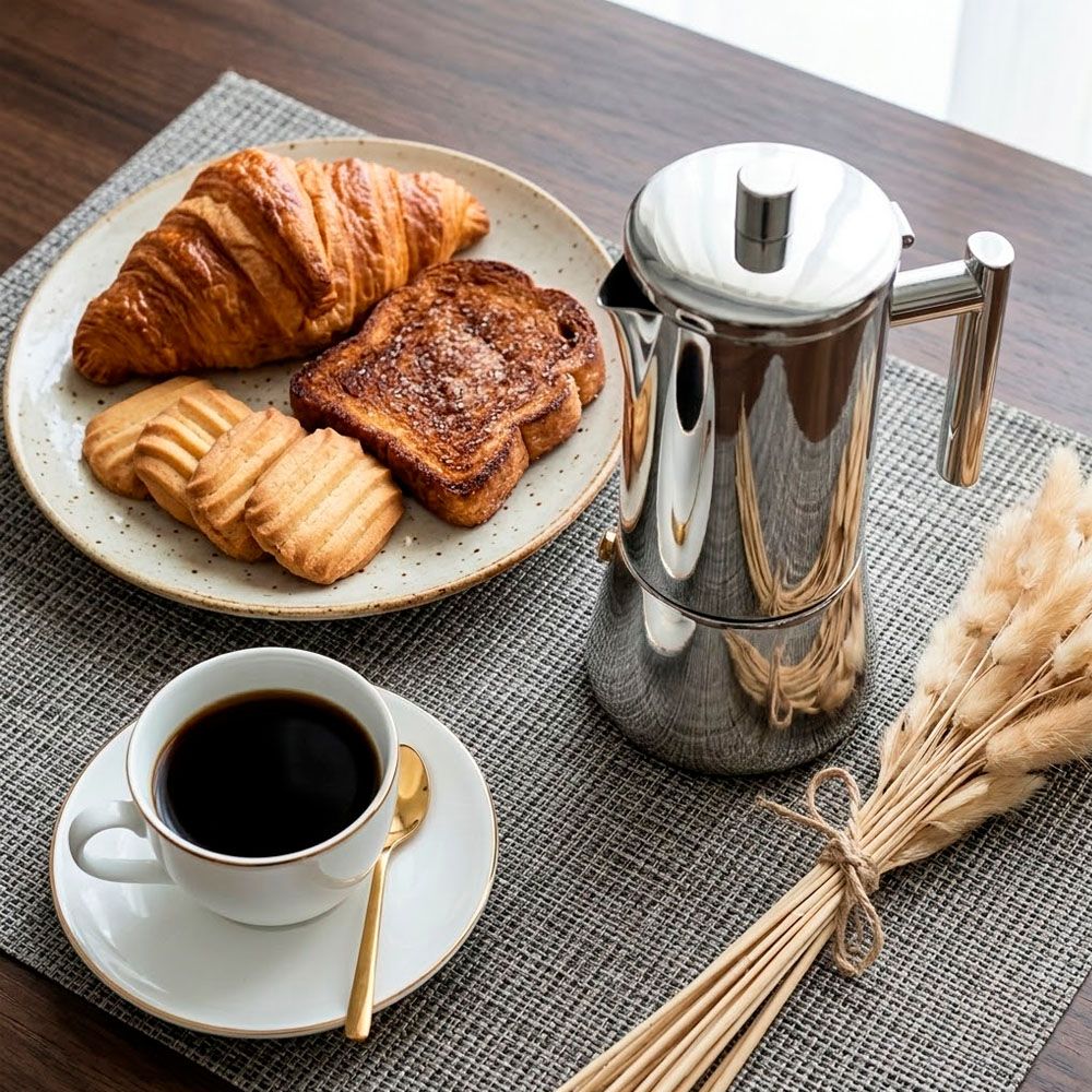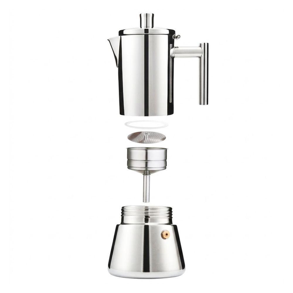 Гейзерна кавоварка Flamberg Premium Napoletano - бізнес-подарунок преміальної якості. Це компактна модель для приготування насиченої ароматної кави традиційним способом. Корпус виготовлений із глянцевої нержавіючої сталі 304/430, стійкої до корозії та високих температур. Класична трисекційна конструкція забезпечує стабільний процес заварювання та виразний смак напою. Повністю металева ручка підкреслює цілісність і довговічність виробу.