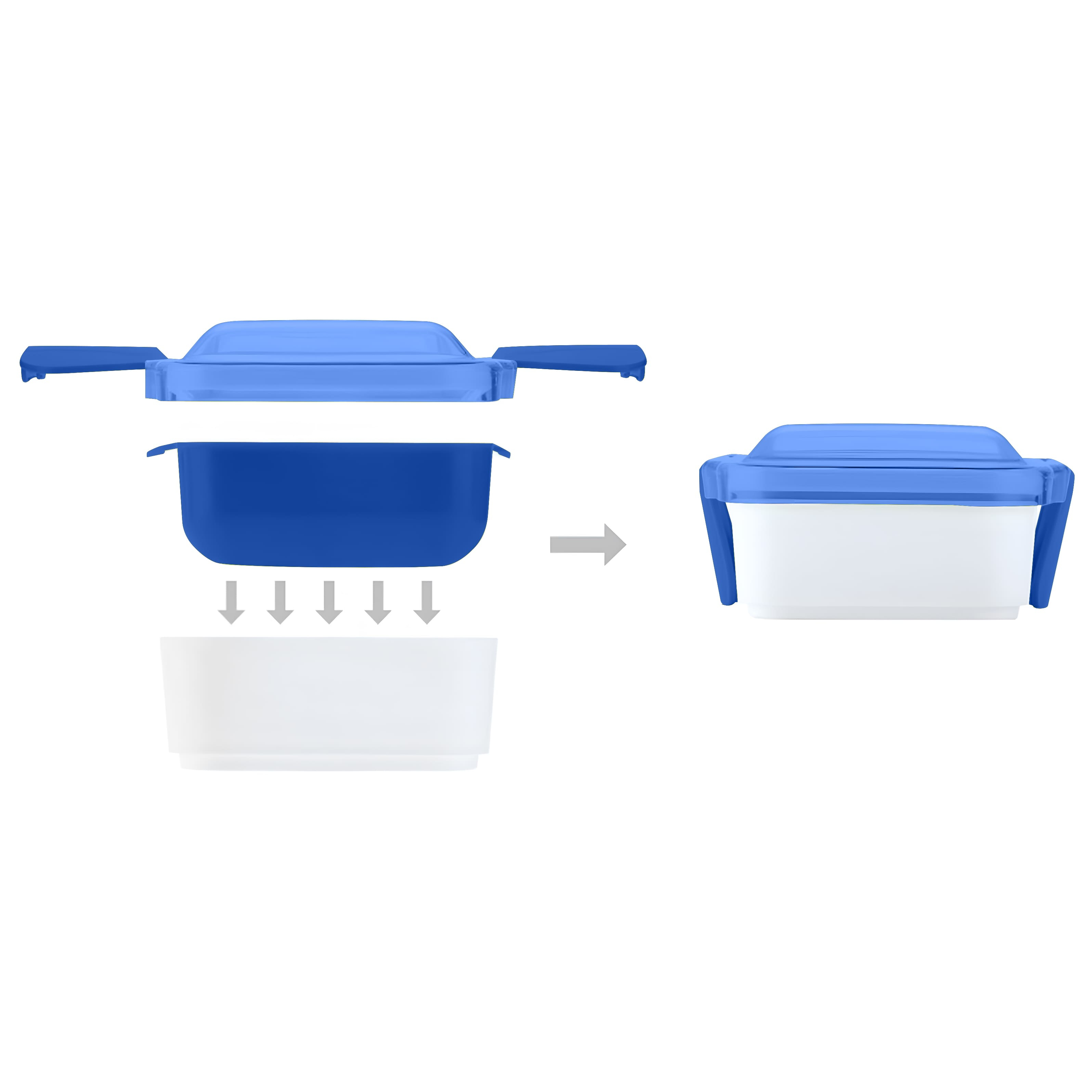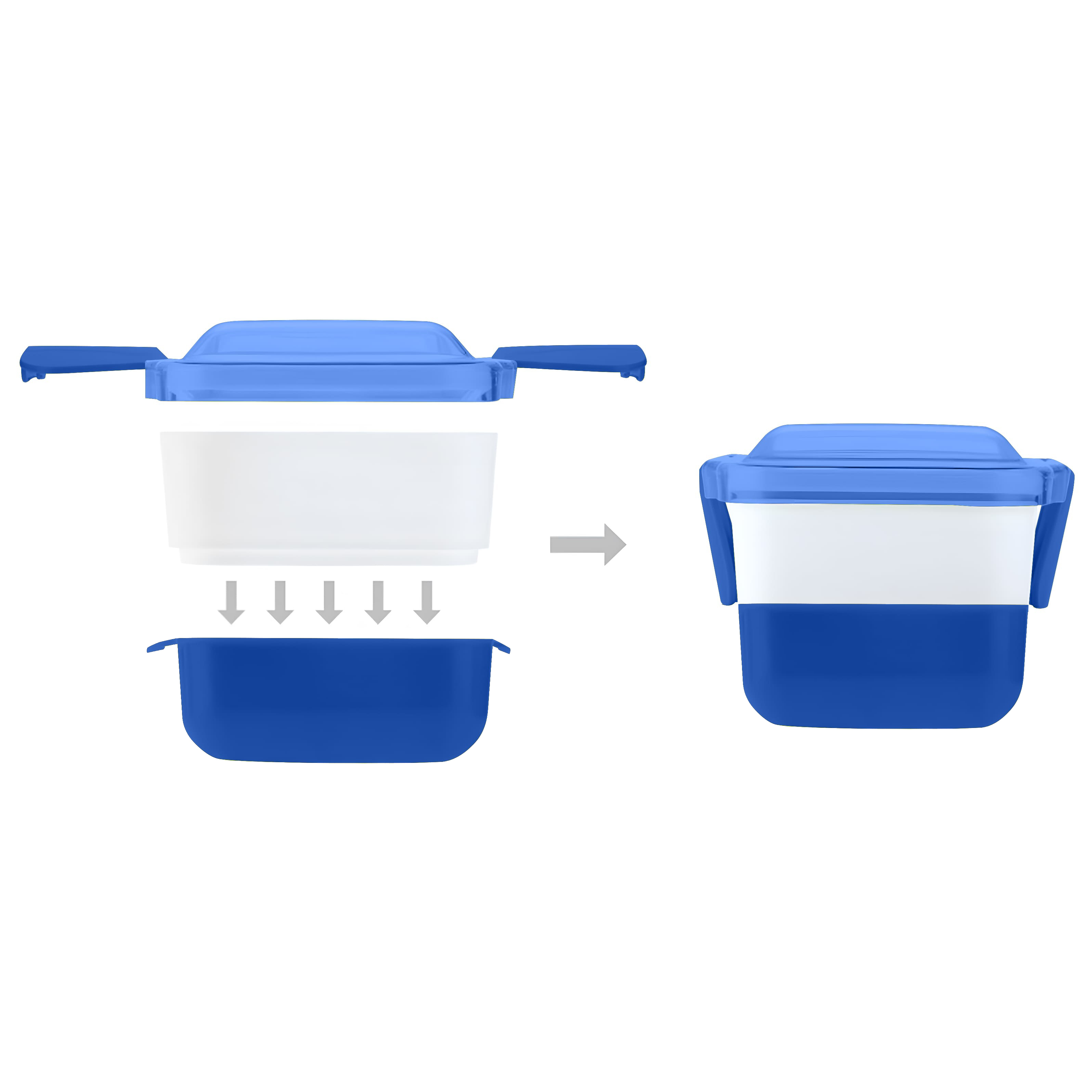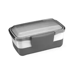 Зручний та стильний ланчбокс із щільною кришкою. Складається з двох окремих контейнерів що дозволяє розділяти страви.Виготовлений з харчового пластику, стійкого до пошкоджень. Кришку не можна використовувати в мікрохвильовій печі. Об’єм: 950 мл. Розмір в складеному вигляді: 18,9 х 13 х 6,4 см. Розмір в розкладеному вигляді: 18,9 х 13 х 9,3 см. Кришка з фіксатором надійно закривається, запобігаючи протіканню. Зручно брати із собою на роботу, навчання чи пікнік. Ідеальний для щоденного використання.