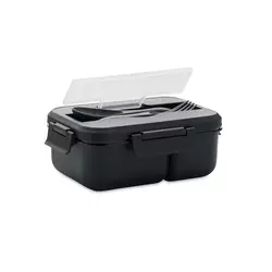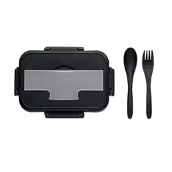 Зручний стильний ланчбокс із щільною кришкою. Складається із двох окремих контейнерів, що дозволяє розділяти страви. Виготовлений з харчового пластику, стійкого до пошкоджень та температури. Можна нагрівати в мікрохвильовій печі і мити в посудомийній машині. Окреме відділення в кришці для приборів. Загальний об'єм: 1000 мл. Розмір 14х20х7 см. Надійні фіксатори, ручка для перенесення, захист від протікання.
