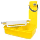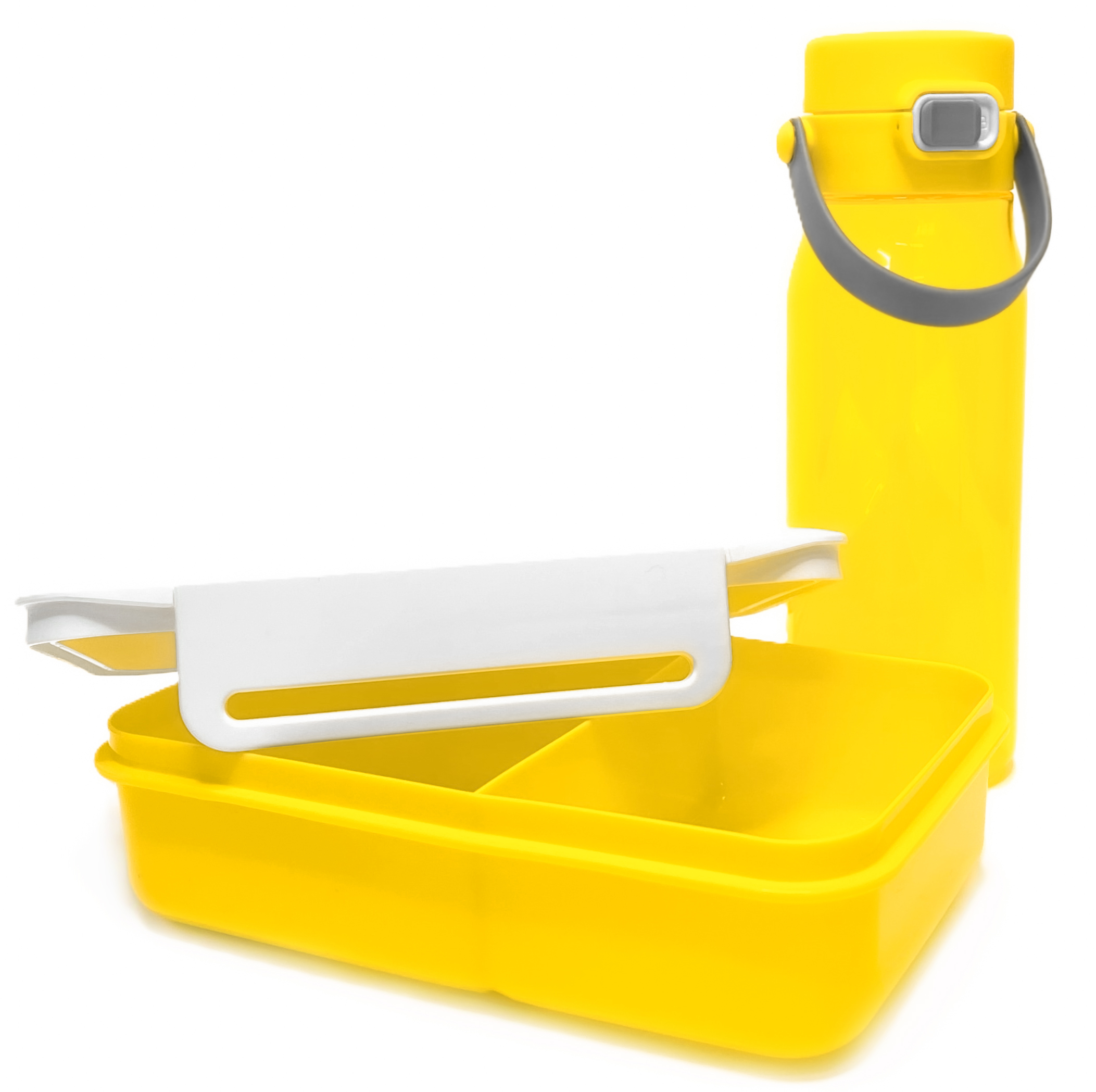 Легкий практичний набір для ланчу доречний й корисний в офісі, в подорожі або на пікніку. Якісний ланчбокс на 2 відділення з харчового поліпропілену можна ставити в мікрохвильову піч і мити в посудомийній машині. Кришка оздоблена силіконовим ущільнювачем, що забезпечує герметичність. Зручні надійні фіксатори на кришці. Тританова містка пляшка для напоїв з відкидною кришкою, силіконовою ручкою та вбудованим ситечком із нержавіючої сталі.
