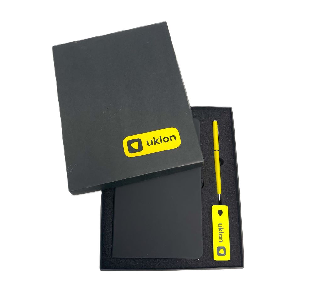 • На коробку та блокнот – повноколірний друк або тиснення;
