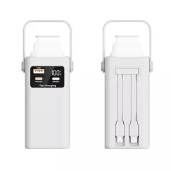 Модель обладнана цифровим дисплеєм, знімними вбудованими кабелями USB-C та Lightning, а також зручною ручкою для перенесення.