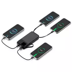 Модель підтримує швидке заряджання 22,5 Вт та оснащена зручним цифровим дисплеєм, що показує точний відсоток заряду. Для максимальної зручності передбачені вбудовані кабелі Type-C та Lightning, ремінець для перенесення та вбудований ліхтарик.