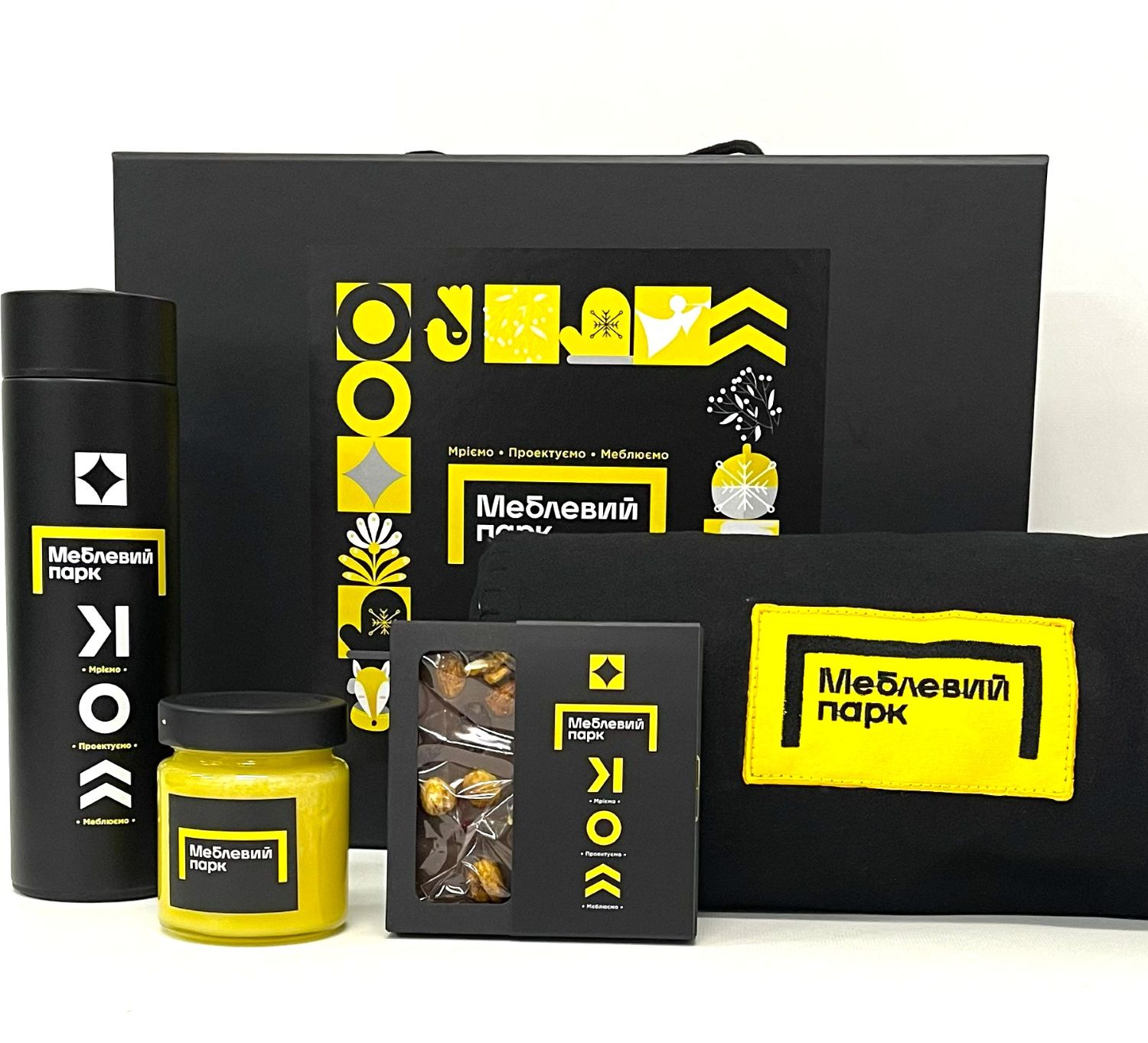 Мы собрали для компании "Мебельный парк" подарок, исполненный тепла и золотистого сияния набор. В качественную коробку из переплетного сторожа положили компактный плед в чехле, который будет полезен в путешествии, на пикнике или на террасе пригородного дома, термос с датчиком температуры для любимых напитков, украинский мед, полон энергии и ароматов лета и крафтовый шоколад с орешками - все о наслаждении моментом и уютом!