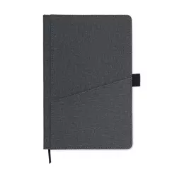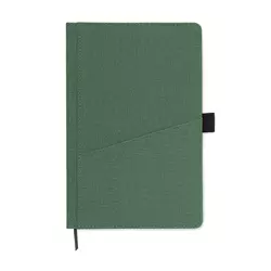 Особенность блокнота - карман спереди, который не только является основным акцентом в его дизайне, но и функциональным элементом для визиток, отдельных страниц и мелких вещей. Имеет закладку в цвет обложки и резиновый держатель для ручки. Блокнот изготовлен с использованием более 50% переработанных материалов. FSC®-certified | FSC MIX CREDIT, P7.1, FSC-C213206