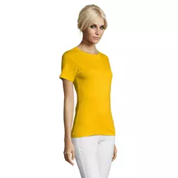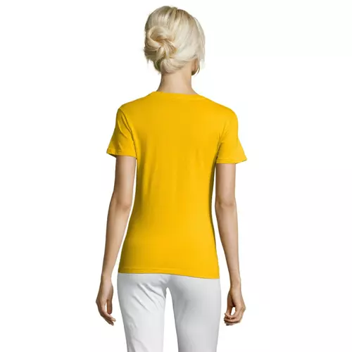 Футболка женская Regent – удобная, практичная и демократичная модель с боковыми швами. Воротник футболки отделан рибом с добавлением эластана, укрепляющая тесьма по воротнику. Короткий рукав, приталенный крой. Футболка выполнена из трикотажного кроеного полотна джерси. Широкая цветовая гамма. Футболку можно стирать в автоматической стиральной машине, используя программы с температурой воды 40°. Качество модели подтверждает ее сертификация – Standard 100 EKO-TEX, PETA Approved Vegan.