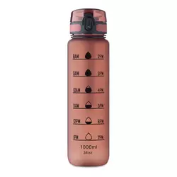 Мотивационная спортивная бутылка для воды – отличный корпоративный сувенир для сезона весенне-летних активностей. Изготовлен из прозрачного термостойкого и ударопрочного пластика (ПЭТ). Матовая поверхность. Очень удобна в использовании, даже в движении: внутри есть трубочка с мягким силиконовым мундштуком. Крышка с откидным верхом открывается одной рукой, имеет защитный замок и защиту от протечки. Удобный атласный ремешок для переноски. Мерная шкала. Емкость 1000 мл.