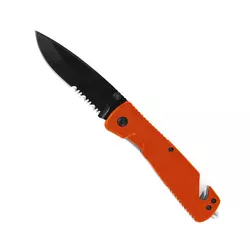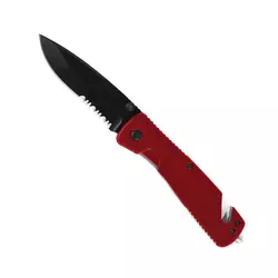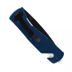 - Двойное скрытое лезвие, позволяющее легко обрезать ремень безопасности (если заклинило ременной механизм)