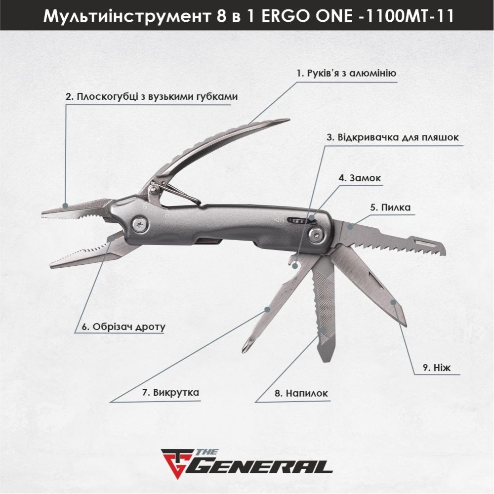 Мультитул с логотипом Ergo One на 8 функций – полезный промо-сувенир. Карманную модель, которая заменяет целый набор инструментов, берут в путешествии, на охоту или на рыбалку. Для любителей туристических походов мультитул стал почти непременным аксессуаром. Мультитул имеет кнопку фиксации, делает его безопасным для применения. Под одним корпусом собраны: кусачки-плоскогубцы, два ножа, напильник, пилочка, открывалка для бутылок, отвертка РН и открывалка для банок.