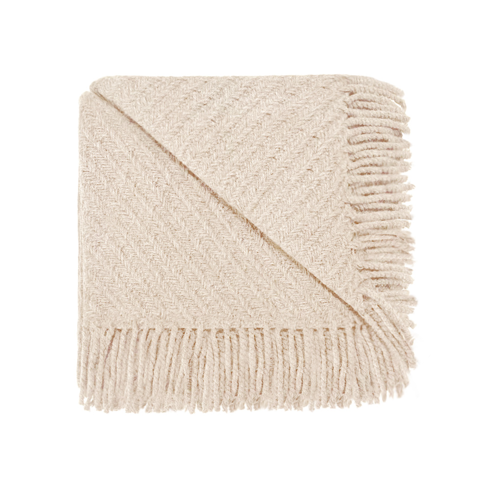Изготовленный из мягкой новозеландской шерсти премиального качества, этот плед будет согревать Вас много лет подряд, почти не требуя ухода. Элегантный вид пледа поддерживают четыре универсальных натуральных цвета, которые гармонично смотрятся в любом интерьере. Края изделия украшены бахромой.