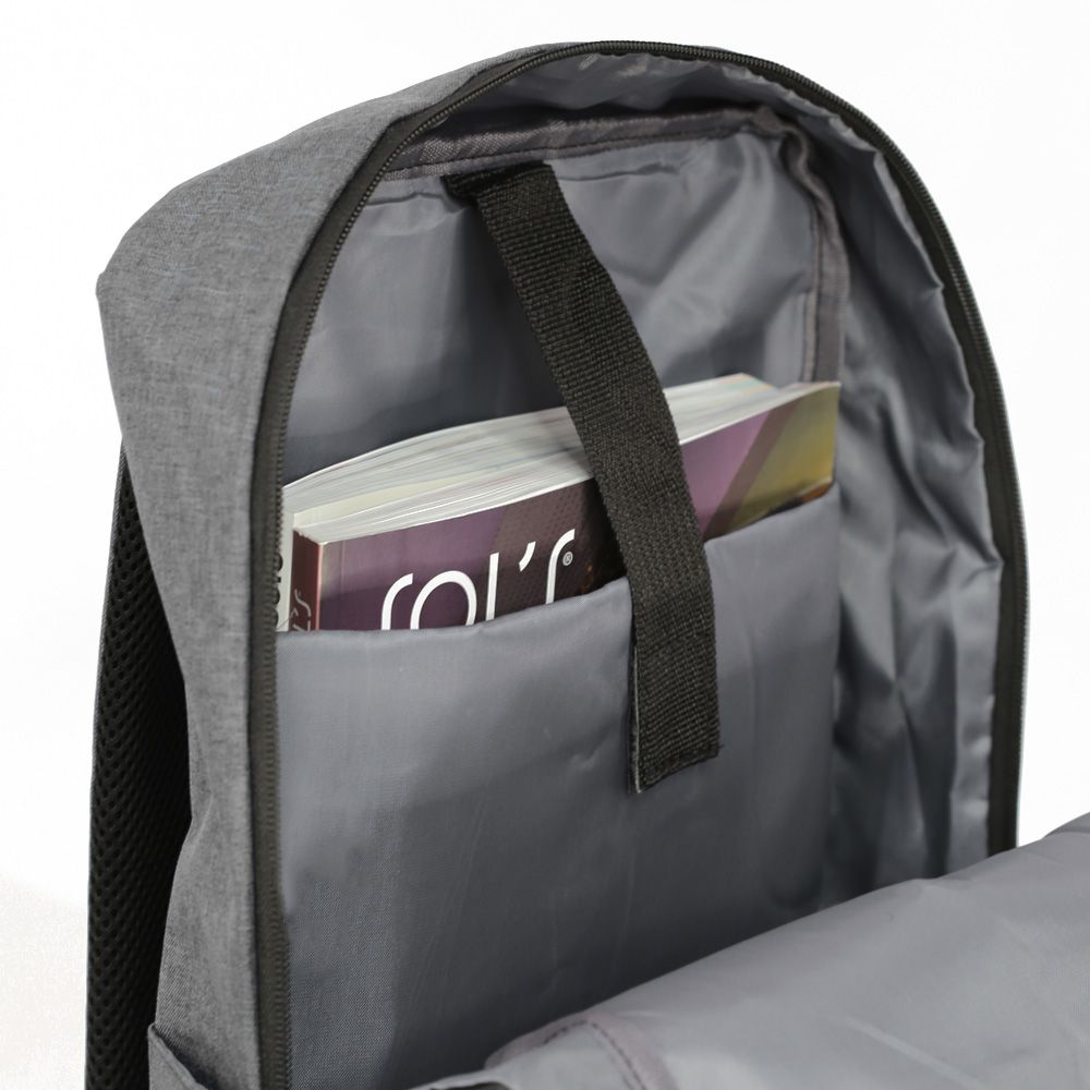 Рюкзак имеет удобную конструкцию: внутри — одно большое отделение на молнии с мягким карманом для ноутбука. Снаружи — вместительный передний карман с горизонтальной застежкой-молнией, декорированный лентой со светоотражающим эффектом. Печать на рюкзаке - прекрасный способ инкорпорировать его в мерч своей компании.