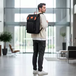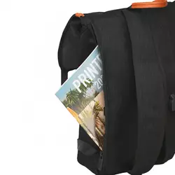 Рюкзак имеет продуманную конструкцию: большое отделение с мягким карманом для ноутбука до 15", дополнительные внутренние карманы для мелких вещей и аксессуаров, а также вместительный передний карман на молнии. Верхняя панель рюкзака откидывается вниз и фиксируется ремешками с застежками. На ней расположен дополнительный карман на молнии, а сбоку предусмотрен отдельный доступ в рюкзак через вертикальную молнию. Рюкзак с логотипом на заказ станет прекрасным корпоративным подарком, который будет привлекать внимание к Вашему бренду.