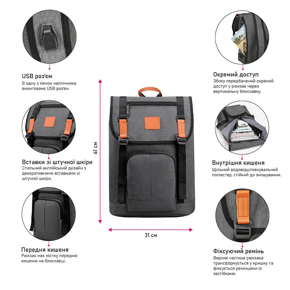 • USB-разъем в лямке для удобной зарядки гаджетов в дороге.