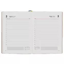 Объем: 320 страниц. Одна страница – один день (СБ и ВС на одной). Бумага: плотность 70 г/м2. Языки: Украинский, Английский Организатор дня с 8.00 до 20.00. Перфорация углов. Закладка лесу. Страницы для заметок