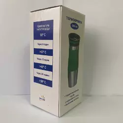 Термочашка с двойными стенками из нержавеющей стали. Надежная пластиковая крышка с кнопкой OPEN/CLOSE и отверстием для питья. Для удобства удержания в руке чашка имеет силиконовую вставку.