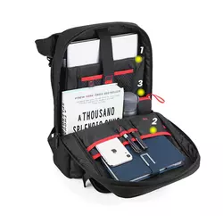 Рюкзак з відділенням для ноутбука 15,6” та відділенням для iPad.Тканина: водонепроникний 100% поліестер + PU, має USB Port, великий відділ та різні кармани органайзери, кишеня Anti theft (RFID) ,прихована кишеня на лямці для карток, на задній спинці ремінь для валізи.